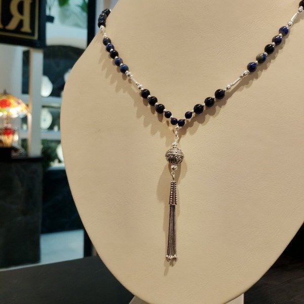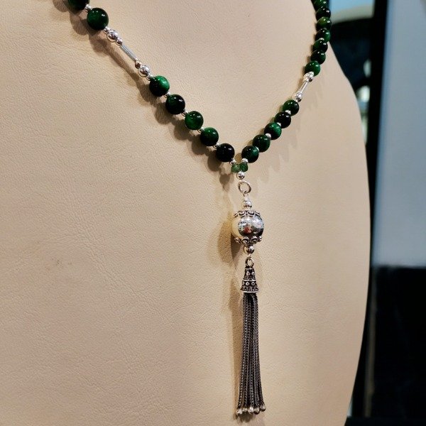 Collar de Plata 925, Piedras, cristal y Perlas de río con fleco